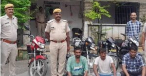 चित्तौड़गढ़। कोतवाली पुलिस थाना, चित्तौड़गढ़ ने वाहन चोरी की घटनाओं का खुलासा करते हुए तीन आरोपियों को गिरफ्तार किया है, जिनमें चोरी की मोटरसाइकिलों का खरीददार भी शामिल है। पुलिस ने चित्तौड़गढ़, भीलवाड़ा और उदयपुर से चोरी की गई कुल पांच मोटरसाइकिलें बरामद की हैं। chittorgarh-police-arrest-person-in-bike-chori